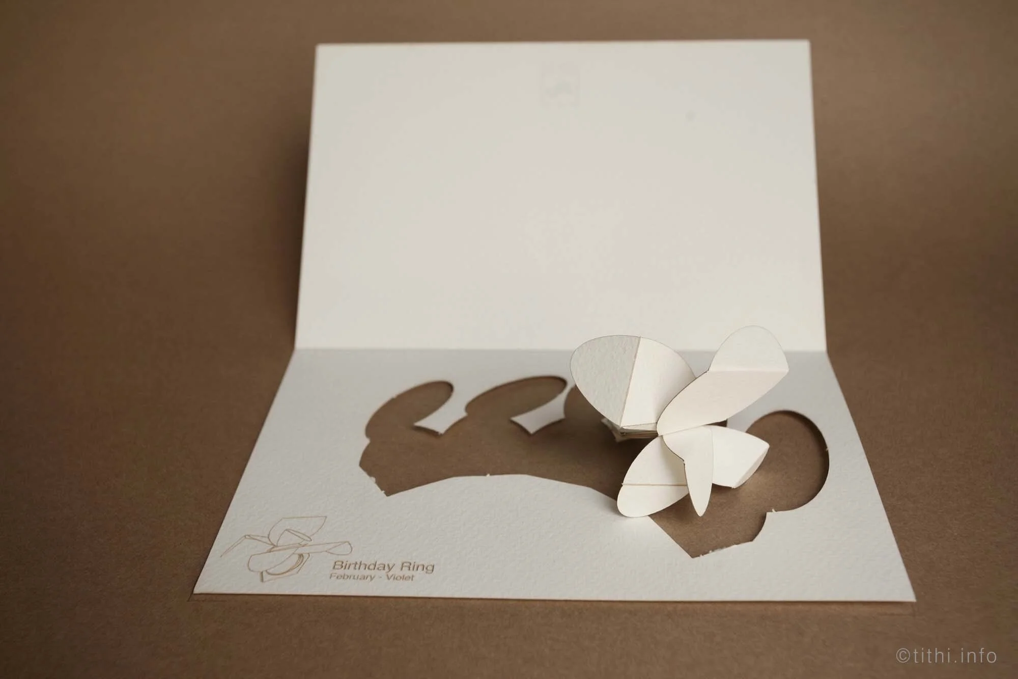 The ‘Birthday Ring’ is a paper card that folds into a flower-shaped ring, resembling the birth flower for each calendar month. These rings make special birthday presents for a special day